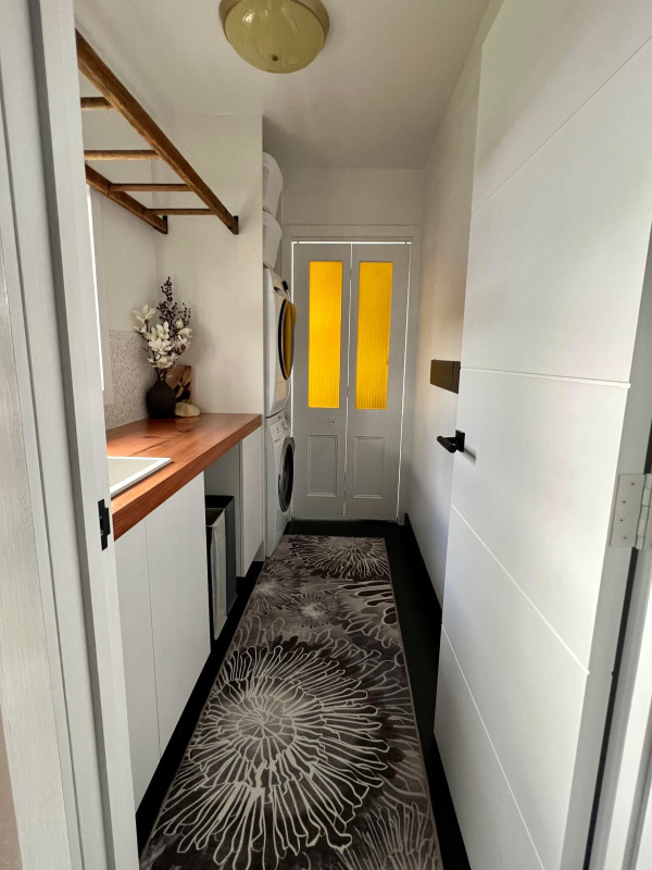 The project also included a full kitchen and laundry renovation, with the former receiving a sleek, black update while the latter embraces a timeless timber and white scheme.