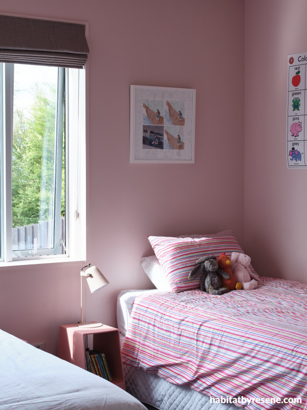 The pastel rose hue of Resene Pot Pourri was used in the children’s room, offering a playful yet restful touch.