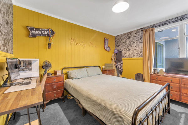 Each of the children’s bedrooms carries a unique shade to them. Monty chose Lemon Ginger, Bridie created her own world in Strikemaster and Vintage, and Tanner, older and seeking calm, opted for Armadillo balanced with softer walls in Pearl, creating a space to retreat and reset.