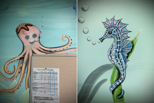 Cute, whimsical characters like seahorses, happy octopus and colourful turtles now grace the walls of the children’s ward at the hospital.