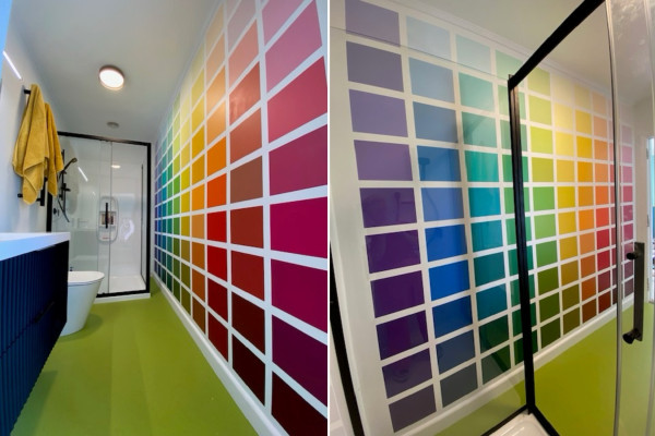 Laura’s bathroom is one of many colours, 100 in fact! Using Resene testpots she has created a one-of-a-kind space. “The Resene colour charts were the inspiration, and we chose our own colours so that we could get a wide range of colours over the one wall,” says Laura. “We absolutely love it! Despite it being a bit of a labour of love to do, it was totally worth it!” This project proves that you really can do anything with colour and make your home yours!