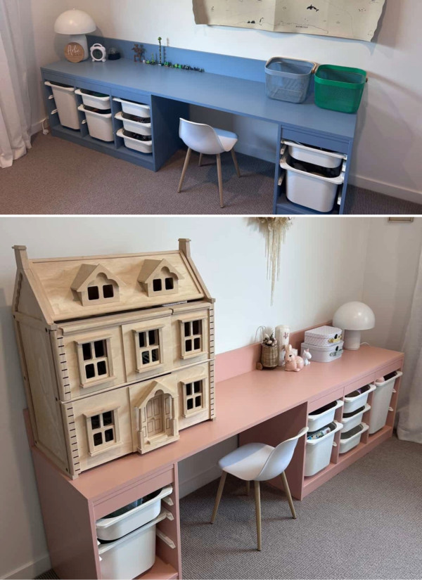 Lauren gave the desks in her children’s rooms a makeover. Her son’s bedroom (top) now features a desk in a grey blue, Resene Escapade, and her daughter’s desk (below) features the beautiful apricot pink of Awaken.