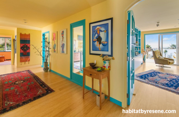 That colour choices were deeply personal. Having travelled across the globe, Jill and David wanted their home to reflect the places they’d explored as well as the vibrant artworks they’d picked up along the way. The Resene scheme had to be punchy while still giving their art the chance to shine.