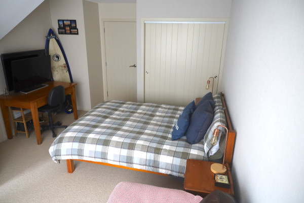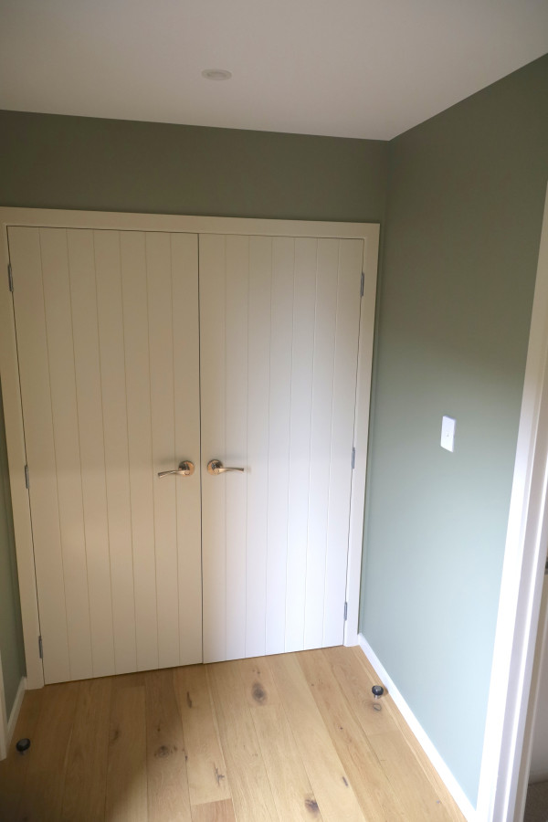 Bedroom walls in Resene Half Fossil, doors and trims in Fossil.