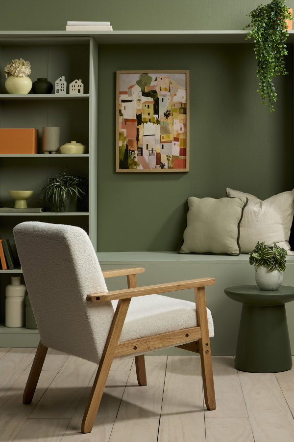 If a chair fits, a nook exists. Claim that awkward corner for your own restful spot with a comfy seat, a small side table and soft lighting. Some built-in shelving, if you can fit it, will help create some extra storage and declutter the area. You can paint it in the same or a similar tone to help it blend into the wall, like we’ve done with Resene Paddock and Resene Green Spring. These gentle pastoral greens, or breezy blues like Resene Breathless and Resene Casper, will bring an instant calming atmosphere to your new reading nook. Layer a throw and cushions in related tones and you can’t go wrong with your favourite artwork on the wall for added colour and personality.