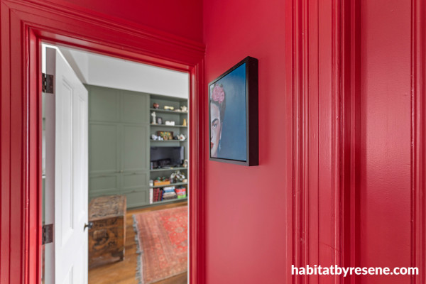 The burst of Resene Pohutukawa is a hidden gem within the home.