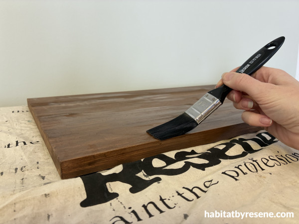 Step 5: Stain your precut piece of timber or ply. We used Resene Colorwood Matai, then sealed with Resene Aquaclear.