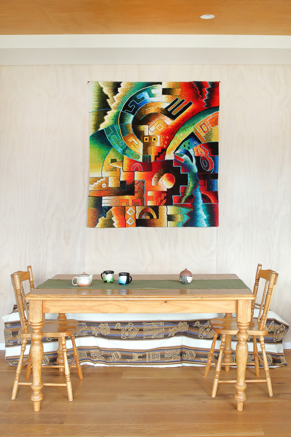 Sustainably harvested New Zealand plywood lining the walls is finished in Resene Colorwood Rock Salt, and clear finished with Resene Aquaclear waterborne varnish chosen to allow the texture of the timber to show whilst softening its tones to provide a natural framing of the outlook beyond. Whitewashed plywood is paired with neutral plasterboard to create a muted backdrop that enhances the various interior timbers.