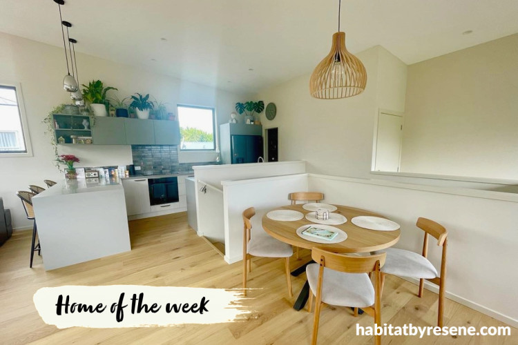 “Scandi design principles resonate in terms of both colour palette and overall design – spaces to hunker down in during winter, pale walls and floors, light airy spaces, natural products and lack of clutter,” says Michelle. “I was keen to bring in a green shade both to ground the home in the natural environment and to create a sense of calm after challenging days at work. The combination of Resene Bitter alongside Fossil and Half Fossil create a sense of calm and refuge. It’s incredibly grounding, I breathe out every time I walk up the stairs to our living space.”