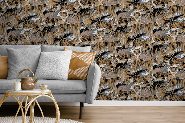A bold tiger design is sure to capture some attention at your next dinner party, and it also offers a great colourway for matching with décor and furniture. Pair Resene Nomade Wallpaper Collection M695-08 with shades like Resene Merino, Tea, Gold Coast and Bokara Grey: