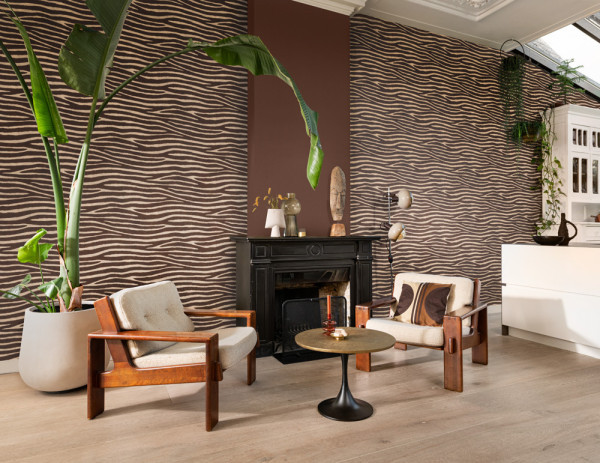 You don’t have to have a giant mural of an animal on your wall, you can use their patterns as inspiration. Try this earthy toned zebra design using Resene African Queen Wallpaper Collection 751741, which pairs perfectly with colours like Resene Quarter Rice Cake, Quarter Nullarbor, Cioccolato and All Black: